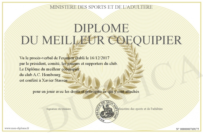 Envoyez par email votre Diplôme du meilleur coéquipier personalisé