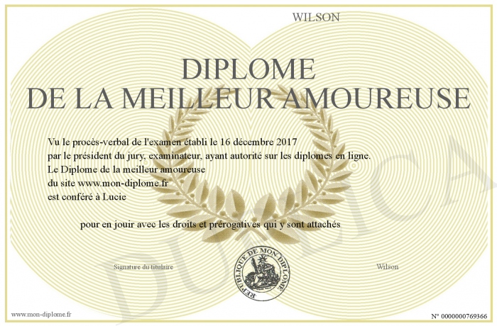 Envoyez par email votre Diplôme de la meilleur amoureuse personalisé