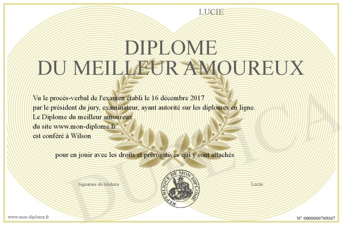 Envoyez par email votre Diplôme du meilleur amoureux personalisé