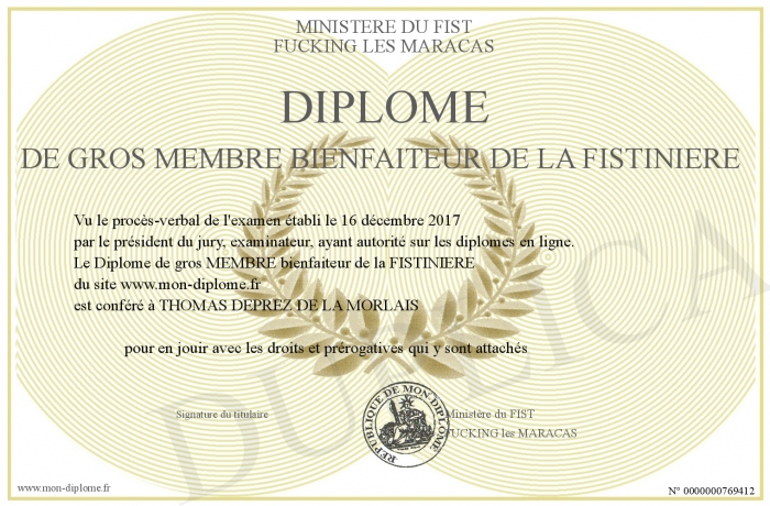 Envoyez par email votre Diplôme de gros MEMBRE bienfaiteur de la FISTINIERE personalisé