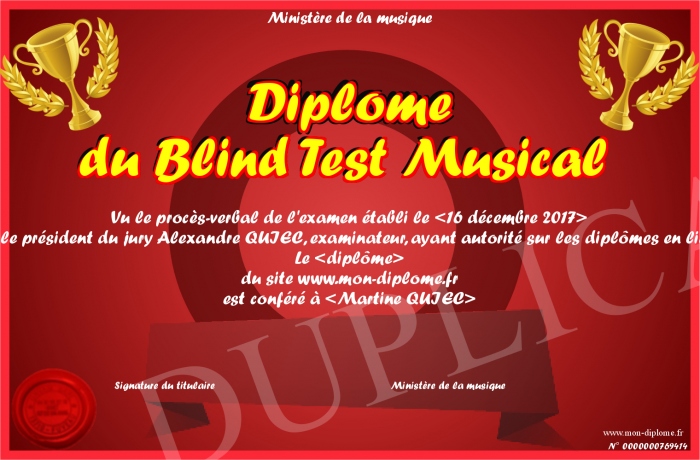 Envoyez par email votre Diplôme du Blind Test Musical personalisé