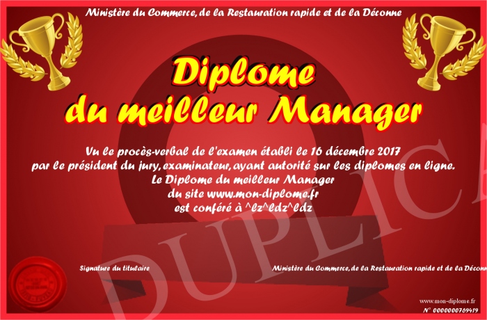 Envoyez par email votre Diplôme du meilleur Manager personalisé