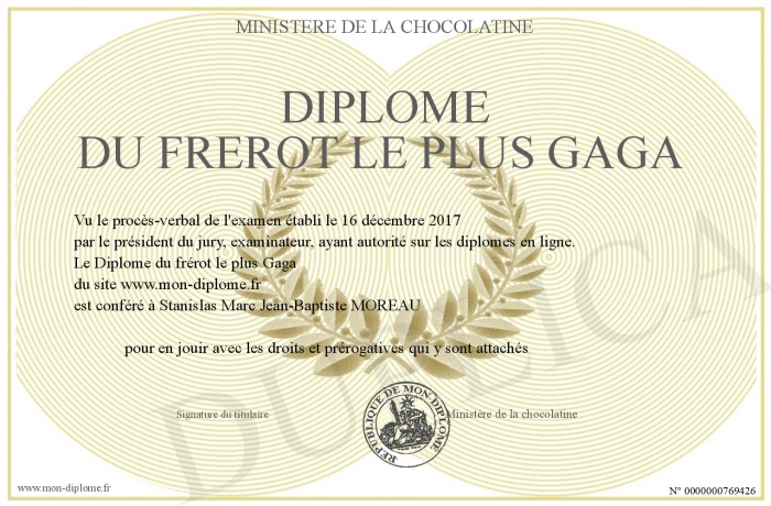 Envoyez par email votre Diplôme du frérot le plus Gaga personalisé