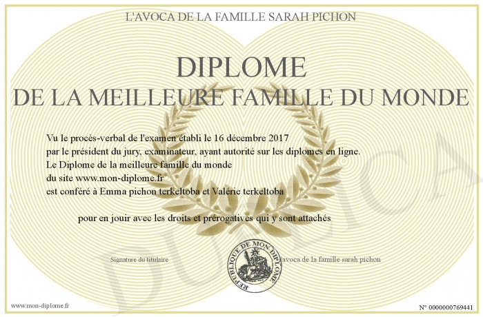 Envoyez par email votre Diplôme de la meilleure famille du monde personalisé