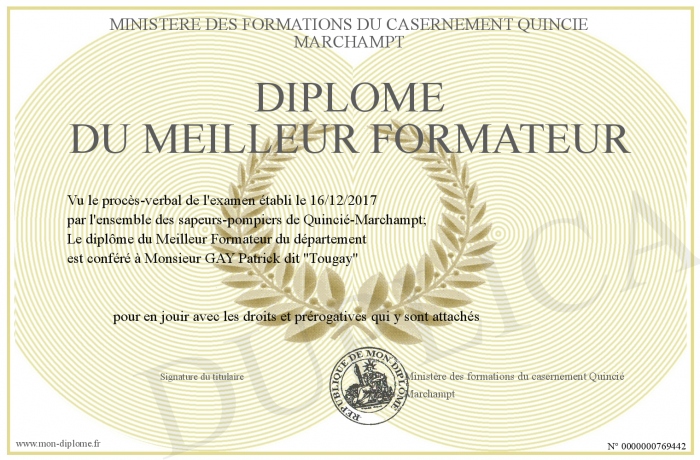 Envoyez par email votre Diplôme du meilleur formateur personalisé