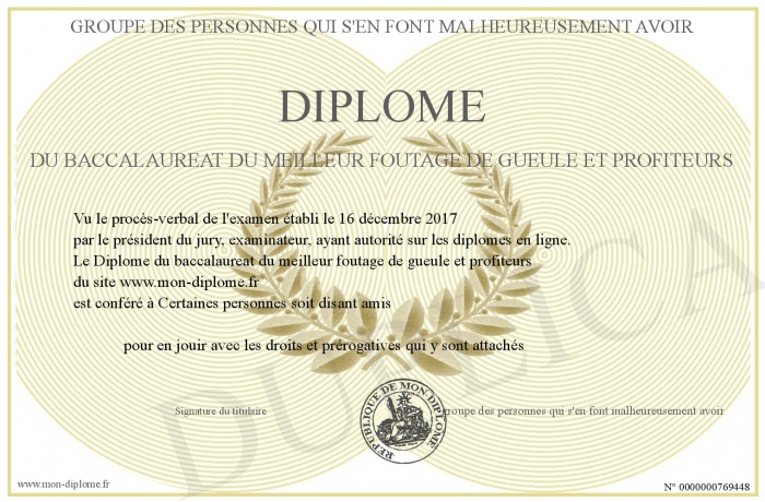 Envoyez par email votre Diplôme du baccalaureat du meilleur foutage de gueule et profiteurs personalisé