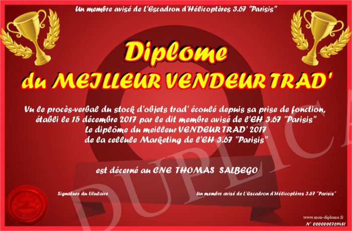 Envoyez par email votre Diplôme du MEILLEUR VENDEUR TRAD' personalisé