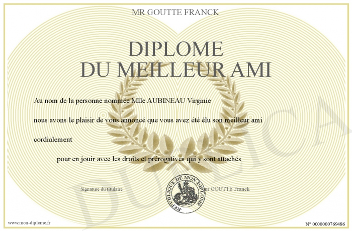 Envoyez par email votre Diplôme du meilleur ami personalisé