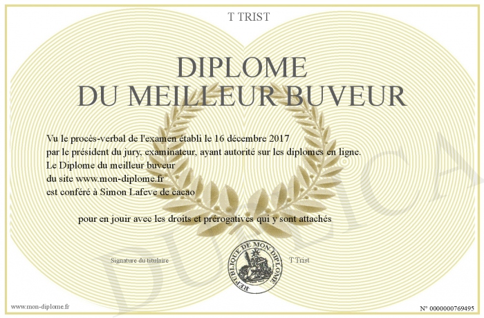 Envoyez par email votre Diplome du meilleur buveur personalisé