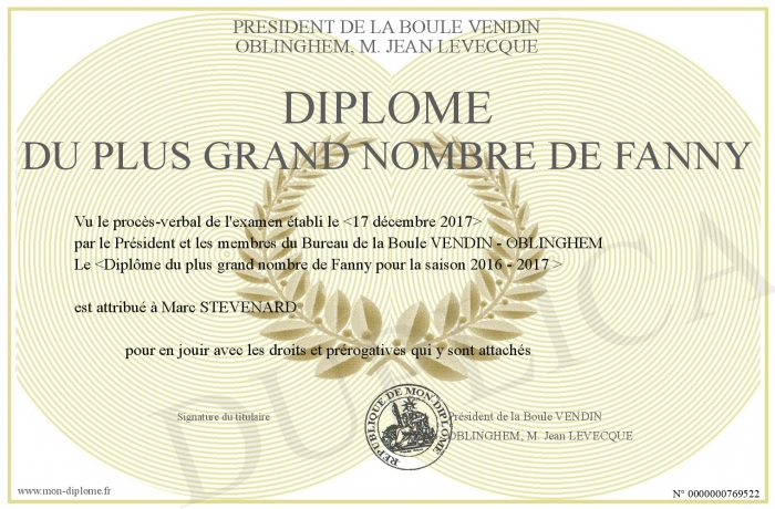 Envoyez par email votre Diplôme du plus grand nombre de FANNY personalisé