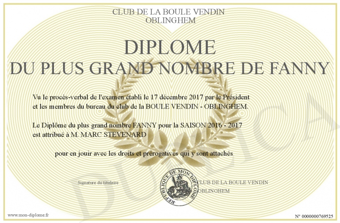 Envoyez par email votre Diplôme du plus grand nombre de FANNY personalisé