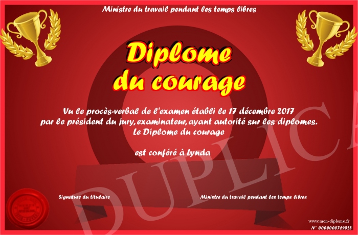 Envoyez par email votre Diplôme du courage personalisé