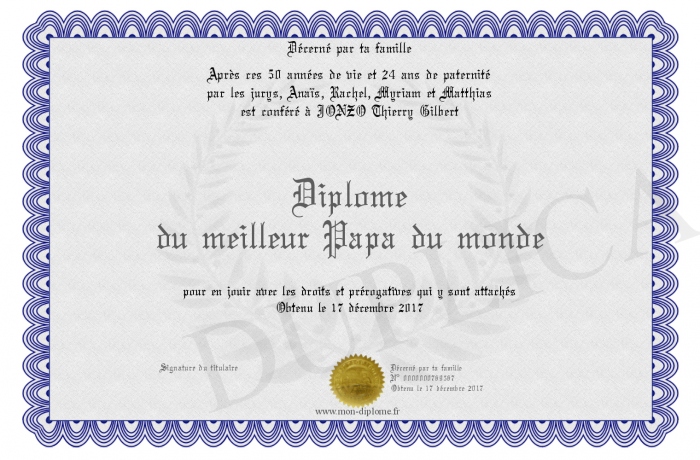 Envoyez par email votre Diplôme du meilleur Papa du monde personalisé