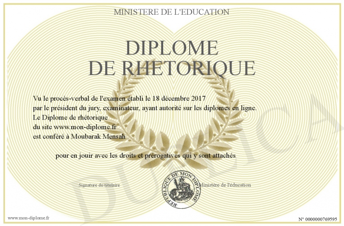 Envoyez par email votre Diplôme de rhétorique personalisé