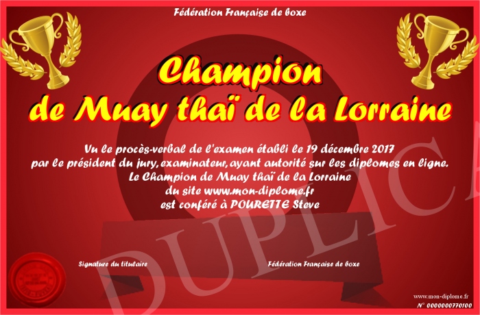 Envoyez par email votre Champion de Muay thaï de la Lorraine personalisé