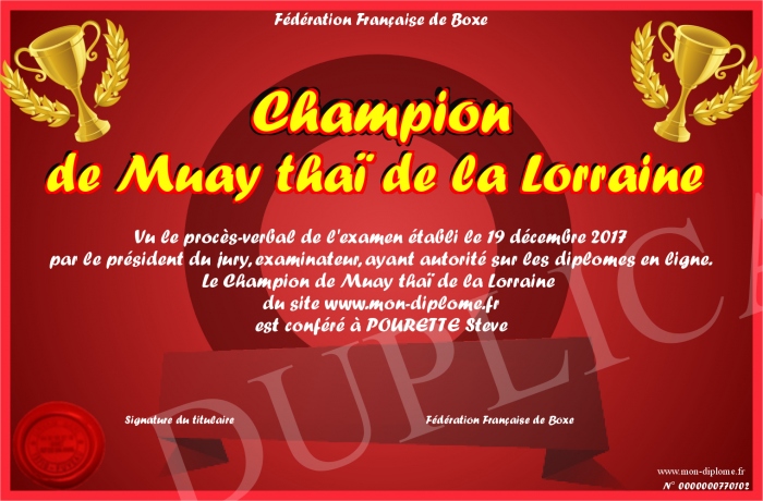 Envoyez par email votre Champion de Muay thaï de la Lorraine personalisé