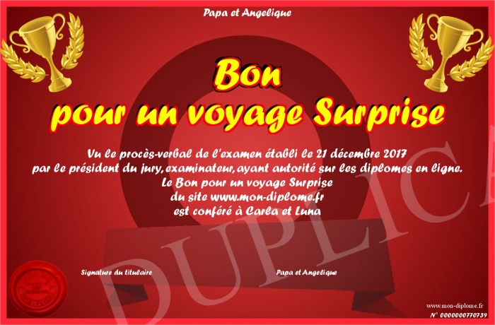 Envoyez par email votre Bon pour un voyage Surprise personalisé