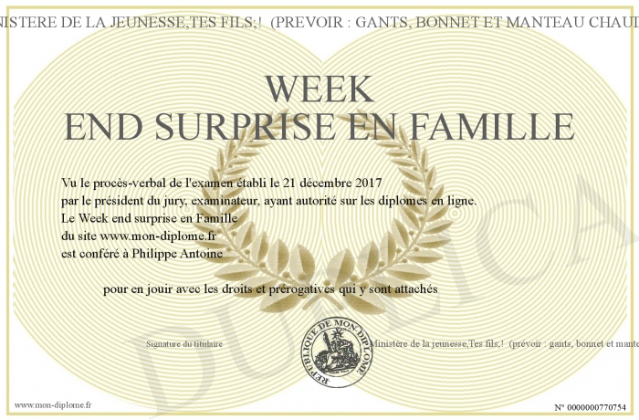 Envoyez par email votre Week end surprise en Famille personalisé