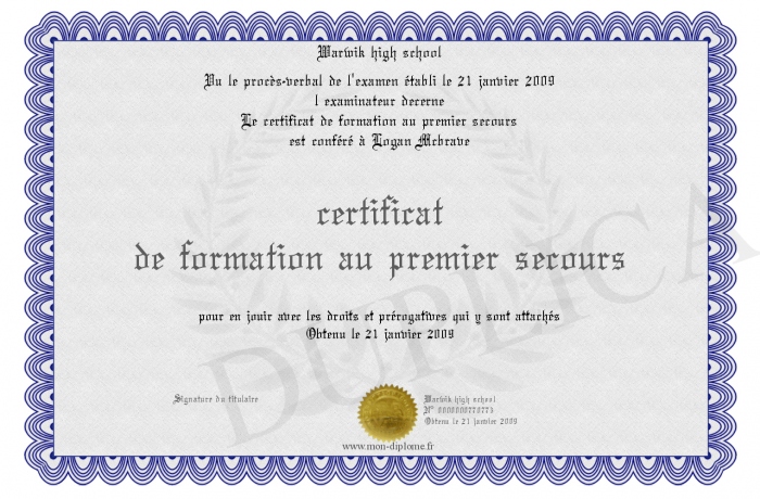 Envoyez par email votre certificat de formation au premier secours personalisé
