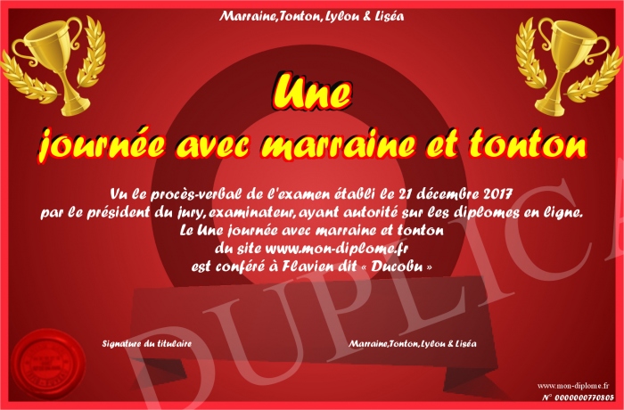 Envoyez par email votre Une journée avec marraine et tonton personalisé