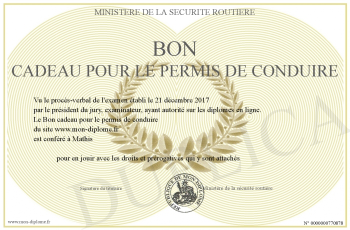 Envoyez par email votre Bon cadeau pour le permis de conduire personalisé
