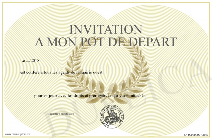 Envoyez par email votre INVITATION A MON POT DE DEPART personalisé