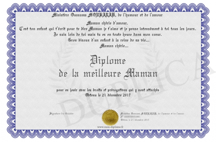 Envoyez par email votre Diplome de la meilleure Maman personalisé