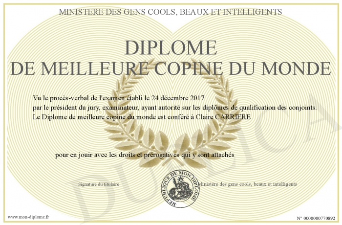 Envoyez par email votre Diplôme de meilleure copine du monde personalisé