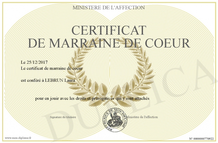 Envoyez par email votre certificat de marraine de coeur personalisé