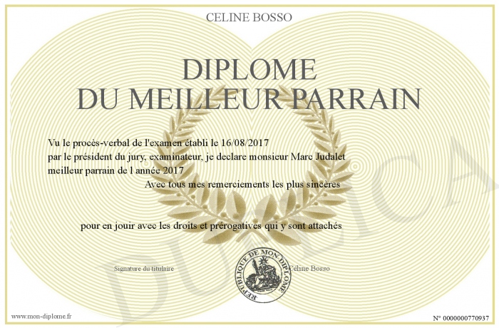 Envoyez par email votre Diplôme du meilleur parrain personalisé