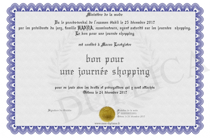 Envoyez par email votre bon pour une journée shopping personalisé