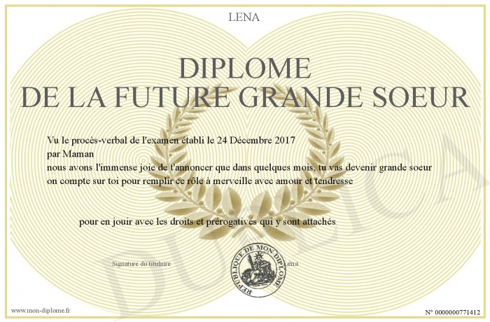 Envoyez par email votre Diplôme de la Future Grande Soeur personalisé