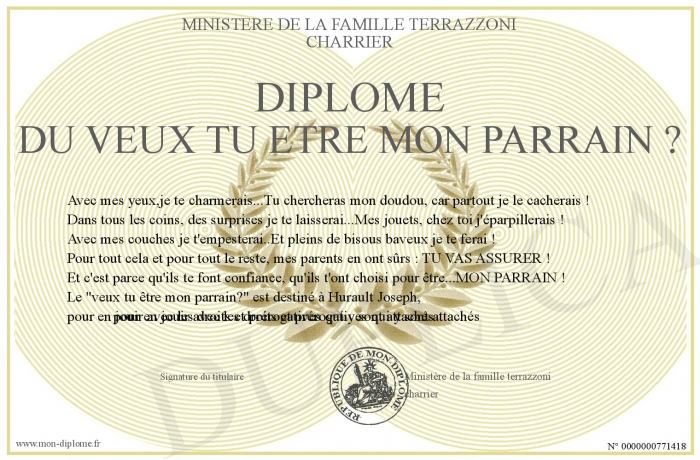 Envoyez par email votre Diplôme du veux tu etre mon parrain ? personalisé
