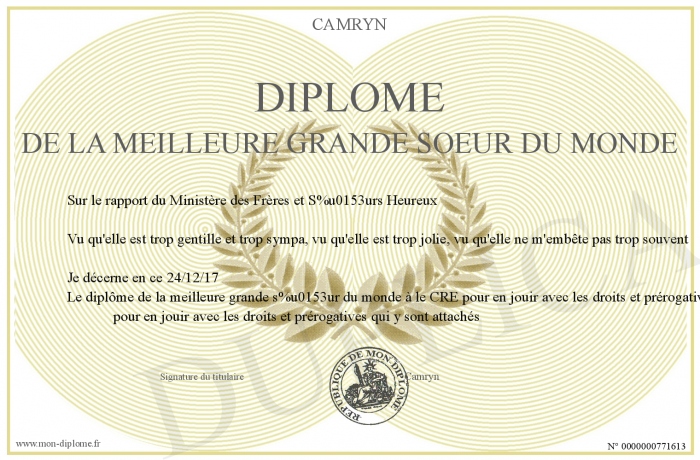 Envoyez par email votre Diplôme de la meilleure grande soeur du monde personalisé