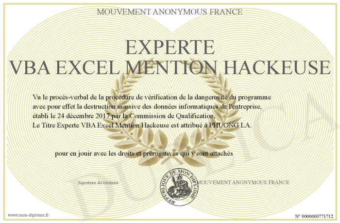 Envoyez par email votre Experte VBA Excel Mention Hackeuse personalisé