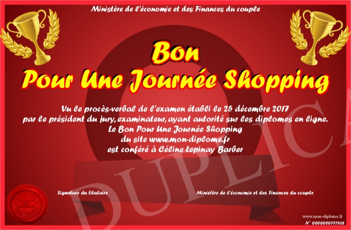 Envoyez par email votre Bon Pour Une Journée Shopping personalisé