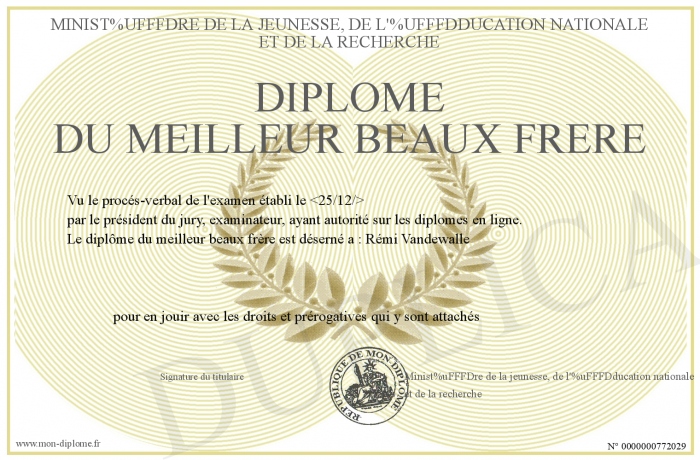Envoyez par email votre Diplome du meilleur beaux frère personalisé