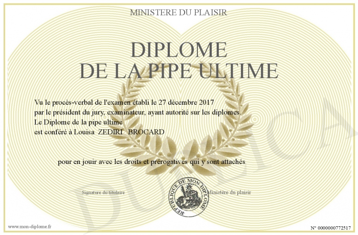 Envoyez par email votre Diplôme de la pipe ultime personalisé