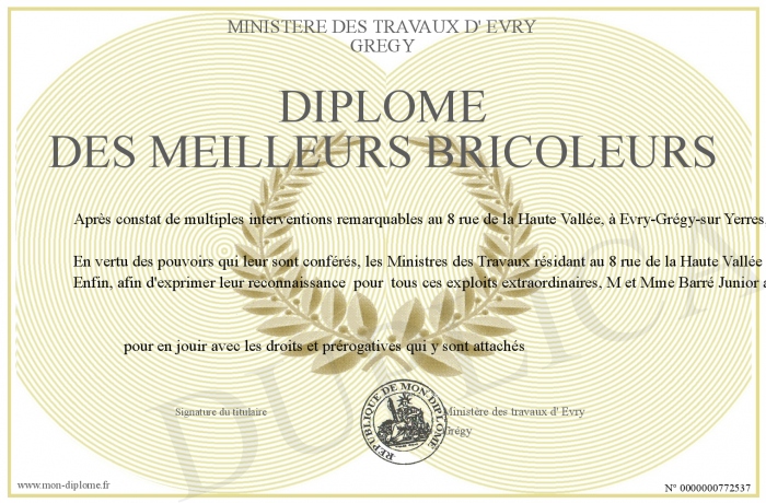 Envoyez par email votre Diplôme des meilleurs bricoleurs personalisé