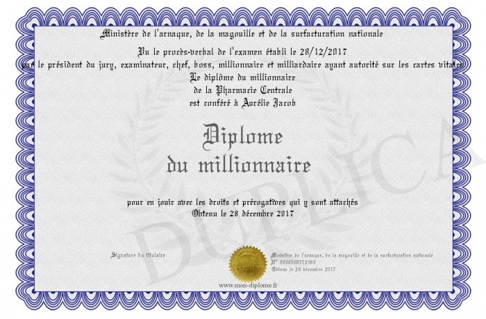 Envoyez par email votre Diplôme du millionnaire personalisé
