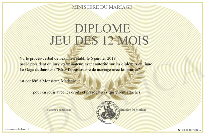Envoyez par email votre Diplôme Jeu des 12 Mois personalisé