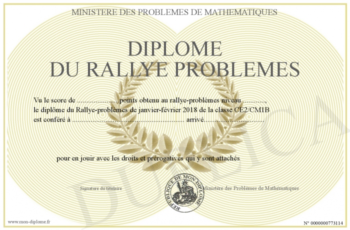 Envoyez par email votre Diplôme du Rallye Problèmes personalisé