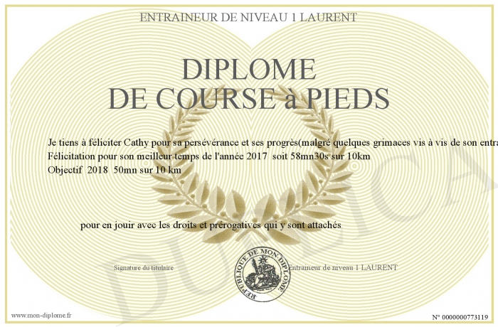 Envoyez par email votre Diplôme de course à pieds personalisé