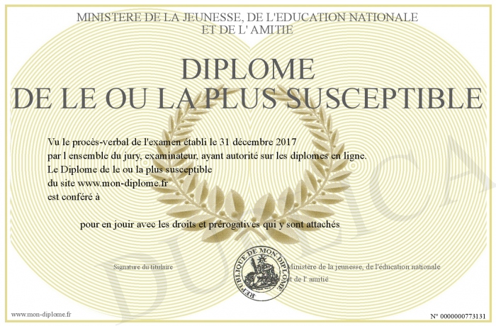 Envoyez par email votre Diplome de le ou la plus susceptible personalisé