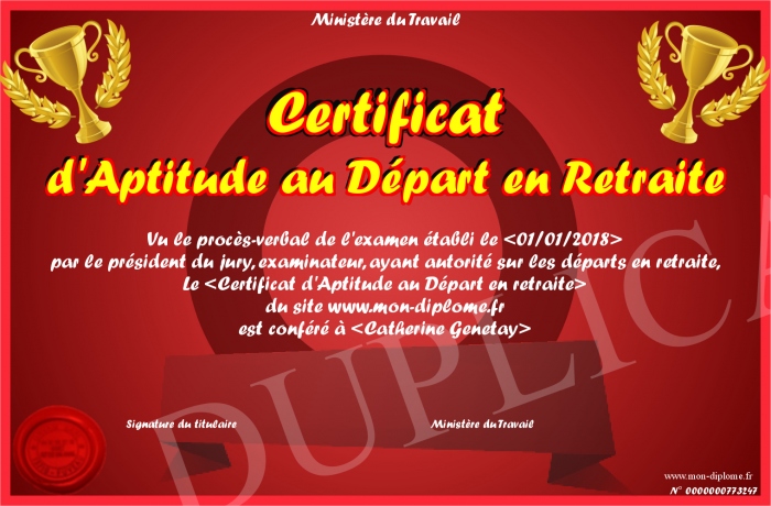 Envoyez par email votre Certificat d'Aptitude au Départ en Retraite personalisé