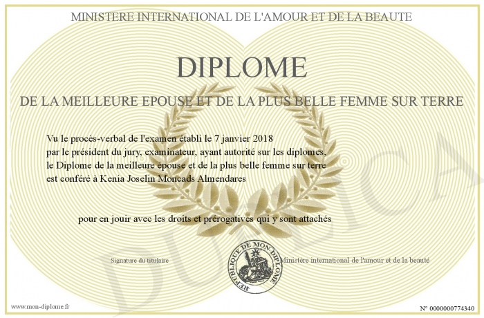 Envoyez par email votre Diplôme de la meilleure épouse et de la plus belle femme sur terre personalisé