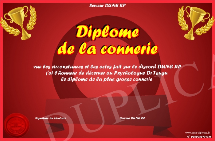 Envoyez par email votre Diplôme de la connerie personalisé