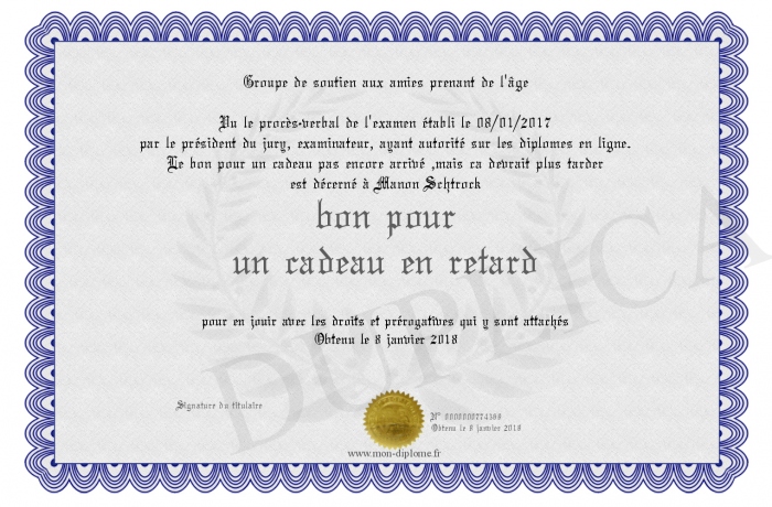 Envoyez par email votre bon pour un cadeau en retard personalisé