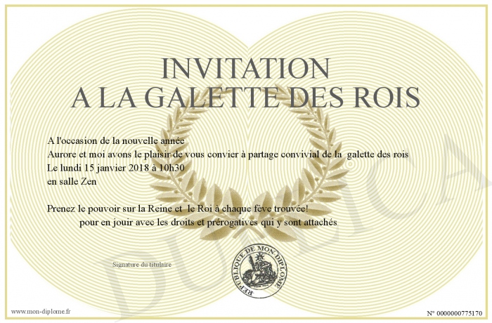 Envoyez par email votre INVITATION A LA GALETTE DES ROIS personalisé