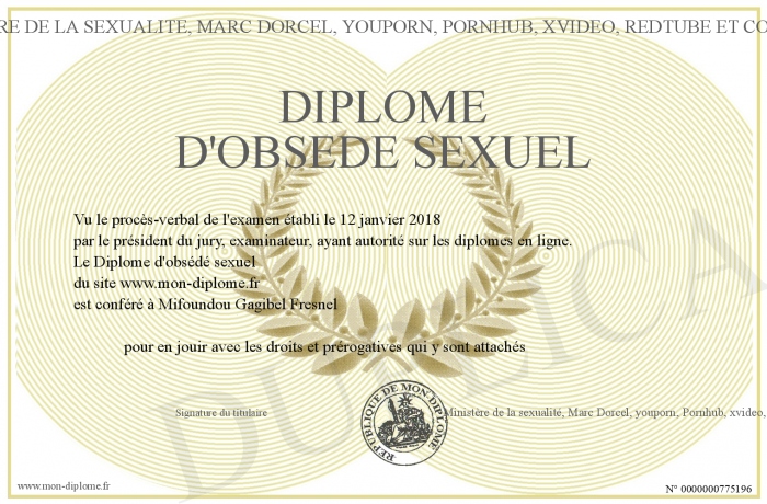 Envoyez par email votre Diplôme d'obsédé sexuel personalisé